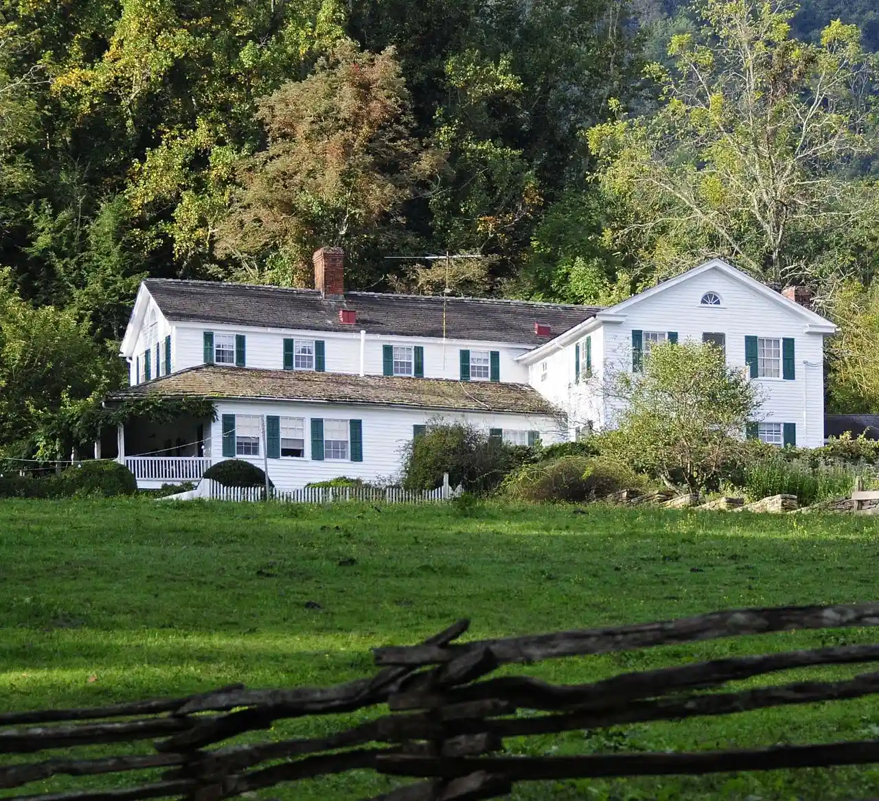 Sherrill's Inn is a historic home located near Fairview, Buncombe County, North Carolina. It is a four bay by two bay, log house of the saddle-bag variety which has been raised to two stories and weatherboarded. Attached to it is an originally separate two-story, log building, two bays wide and two bays deep. Also on the property are a contributing stone spring house and log meathouse. The building was built about 1845, and used as an inn throughout much of the 19th century. Read more on Wikipedia