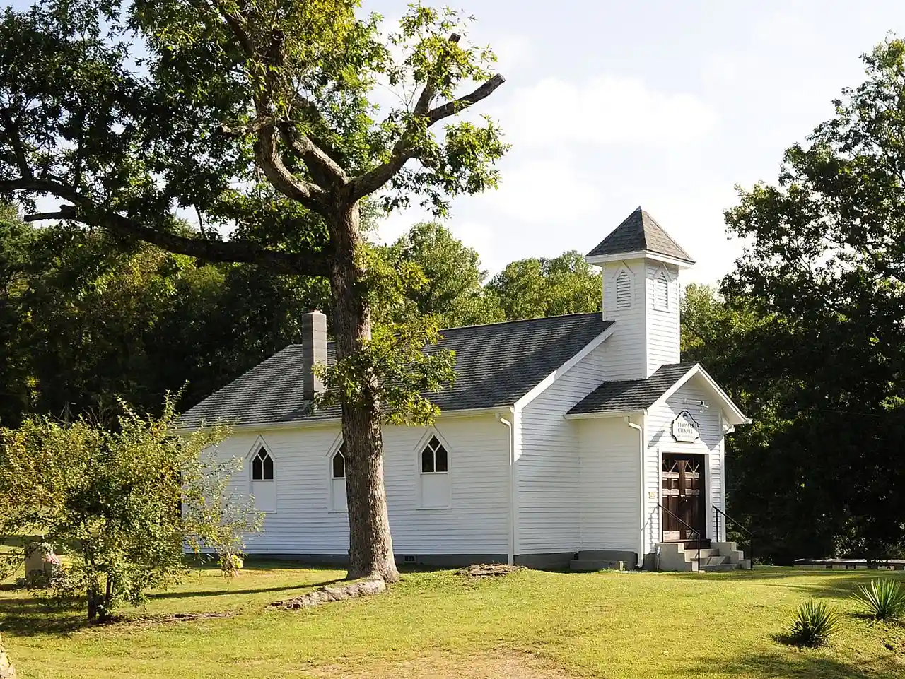 Thomas Chapel A.M.E. Zion Church is a historic African Methodist Episcopal church located at Black Mountain, Buncombe County, North Carolina. It was built in 1922 by descendants of freed slaves, and is a one-story, frame building with Gothic Revival design influences. It is sheathed in weatherboard and features a tall, pyramidal-roof bell tower. Read more on Wikipedia