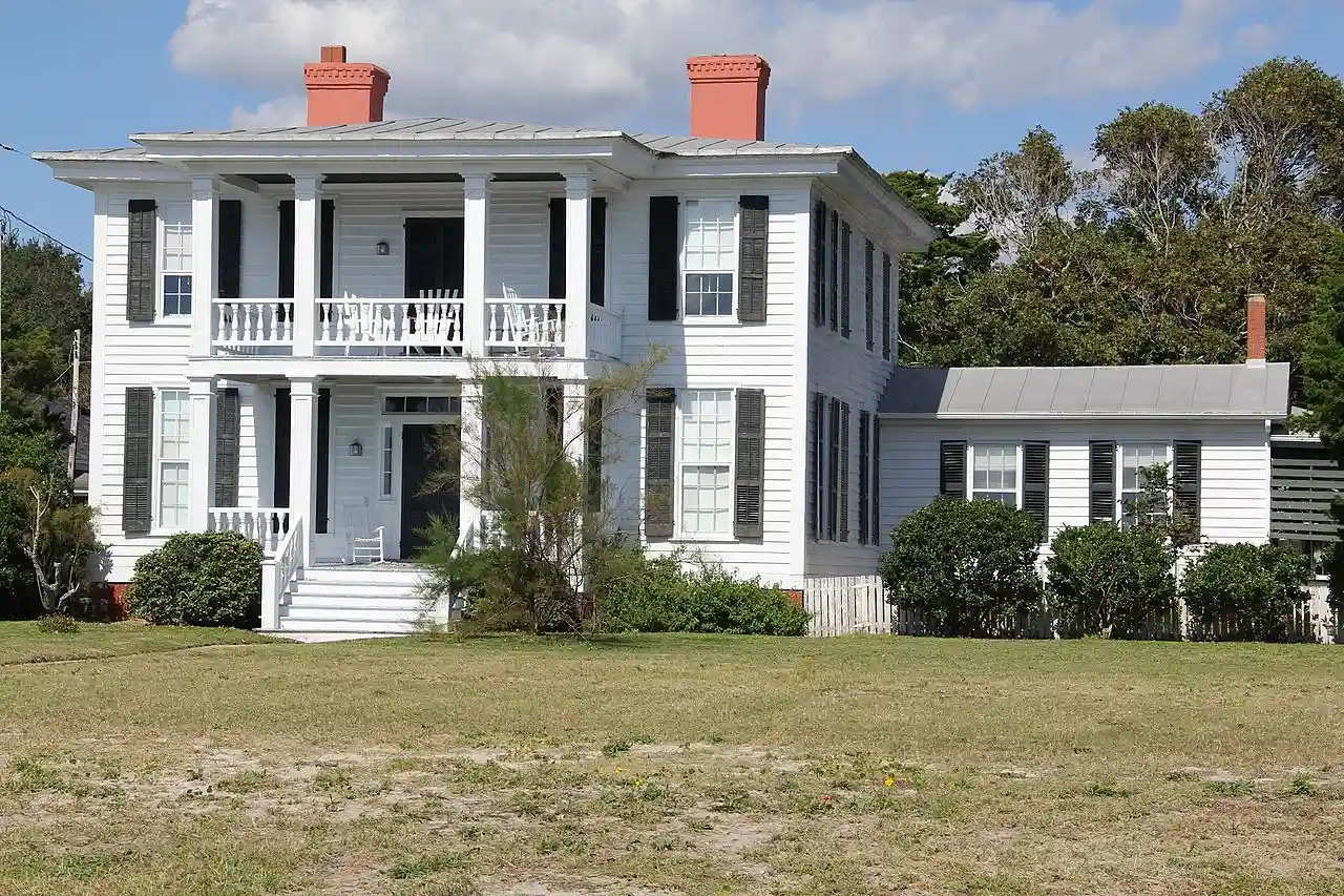 Gibbs House is a historic home located at Beaufort, Carteret County, North Carolina. It was built about 1851, and is a two-story, five bay by four bay, nearly square Greek Revival style dwelling. It features a two-tier porch with four paneled posts. The house was used in the 1880s by marine scientists from the Johns Hopkins University. The Johns Hopkins Seaside Laboratory operated here for some ten years, probably the first school of marine biology in the United States. Read more on Wikipedia