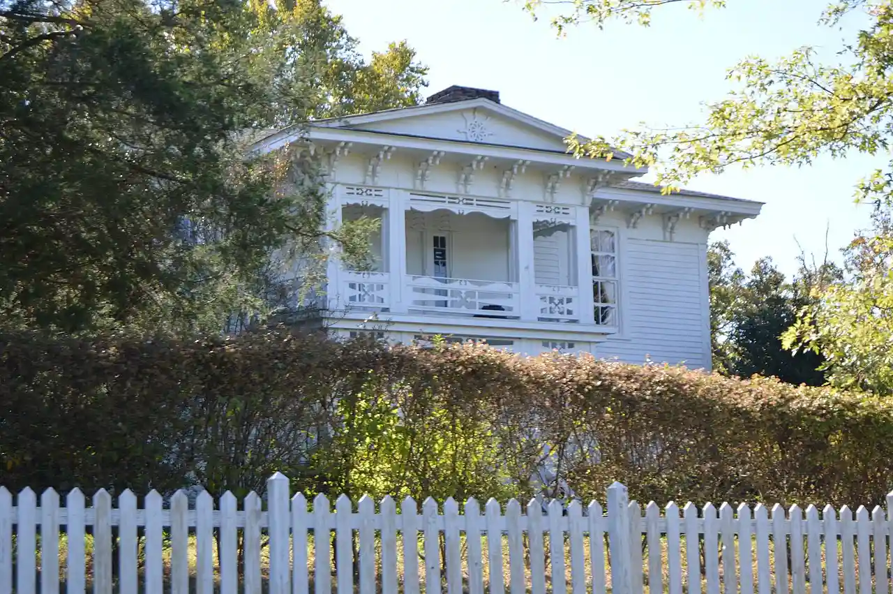 Garland-Buford House is a historic home located near Leasburg, Caswell County, North Carolina. It was built in 1877, and is a large two-story, rectangular Victorian frame house, three bays wide and two deep. It is set on a full raised basement of fieldstone and brick. It features highly decorated inventive and exuberant sawnwork ornament and a three-bay two-story pedimented front porch. Read more on Wikipedia