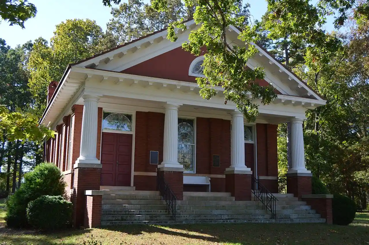 Red House Presbyterian Church, also known as Hugh McAden Gravesite or Red House Church, is a historic Presbyterian church and cemetery located at 13409 NC 119 N in Semora, Caswell County, North Carolina. The Classical Revival red brick church building was constructed in 1913. It features a portico with four round, fluted wooden Doric order columns. Also on the property is a contributing church cemetery. Read more on Wikipedia