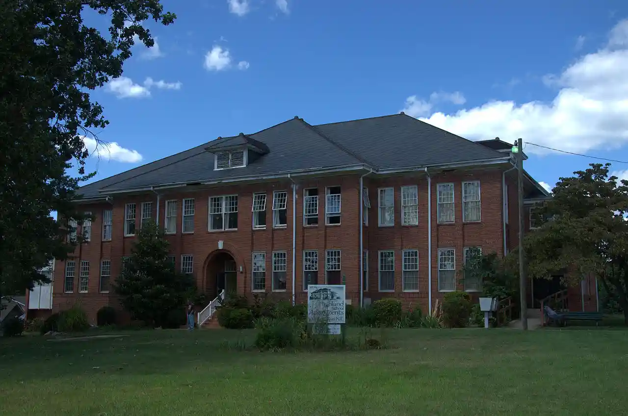 Highland School, also known as Highland Graded School, is a historic school building located at Hickory, Catawba County, North Carolina. It was built in 1921, and is a two-story, brick building with hipped slate roof in the Classical Revival style. It has a projecting nine-bay central pavilion. A brick "gymtorium"(which has since been torn down) and lunchroom building was built in 1950 and connected by a covered walkway. It has since been converted into the Highland School Apartments. Read more on Wikipedia