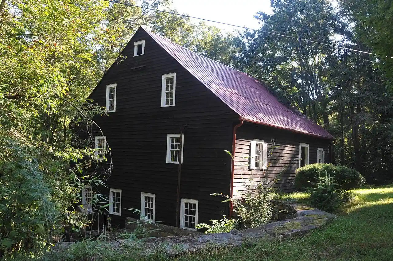 Baldwin's Mill is a historic grist mill and national historic district located near Pittsboro, Chatham County, North Carolina. The district encompasses one contributing building and three contributing structures. The mill was probably built by 1807, is a 1 1/2- to -story, heavy timber-framed structure approximately 30 feet by 40 feet. Associated with the mill are the mill dam, and mill and tail races. The property also includes a stretch of roadbed dates to about 1820, a blacksmith's shop site (c. 1880), and two log cabins (c. 1830) moved to the property in 1975. The mill ceased operation in the late 1920s. It was restored to working order in 1941. Read more on Wikipedia