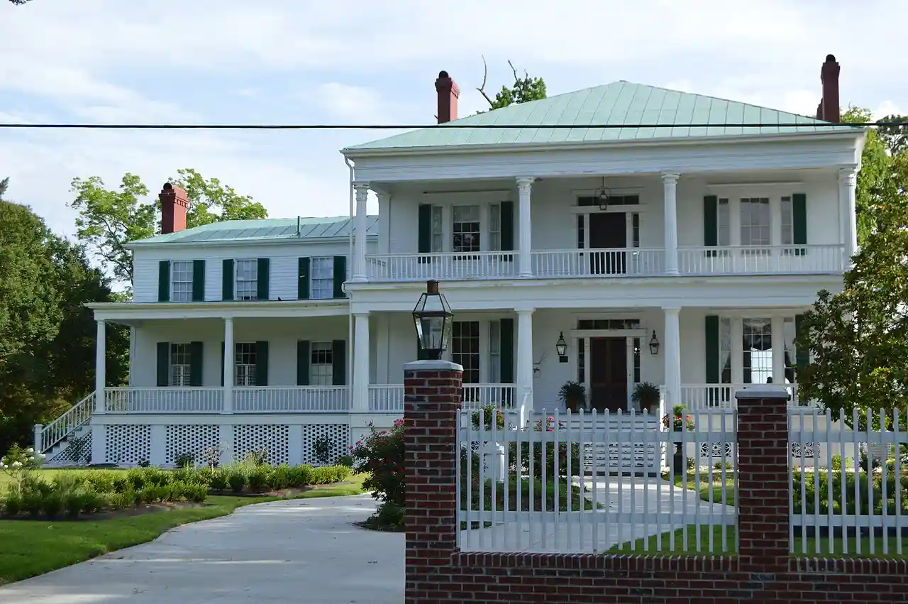 Pembroke Hall is a historic home located at Edenton, Chowan County, North Carolina. It was built about 1849, and is a two-story, Greek Revival style frame dwelling with a low hip roof. It has a two-story, three-bay, frame wing. The front and rear facades feature full-length, three-bay superimposed porticoes. Read more on Wikipedia