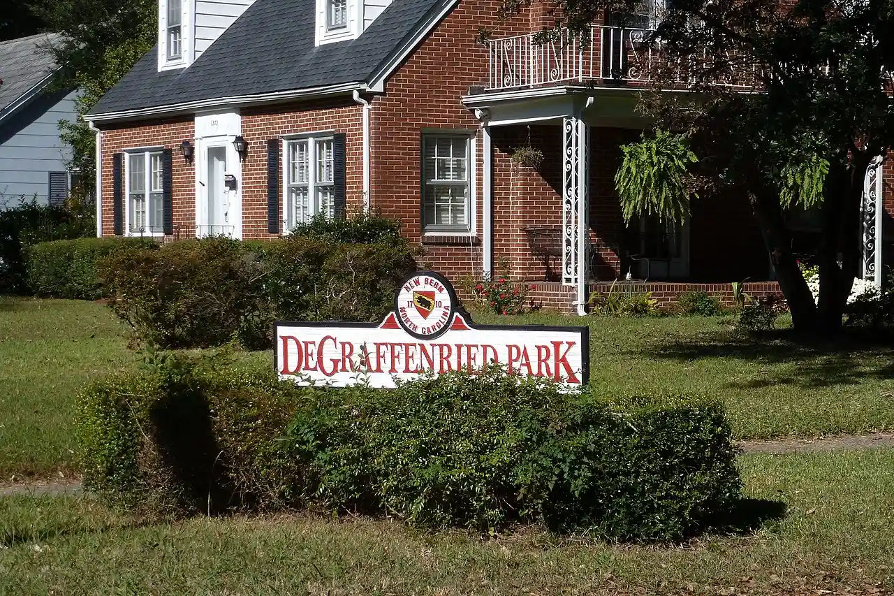 DeGraffenried Park Historic District is a national historic district located at New Bern, Craven County, North Carolina. It encompasses 86 contributing buildings and 1 contributing site in a residential section of New Bern developed between 1926 and 1956. The district is characterized by dwellings in the Colonial Revival and Tudor Revival styles. Located in the district is the site of DeGraffenried Park. Read more on Wikipedia
