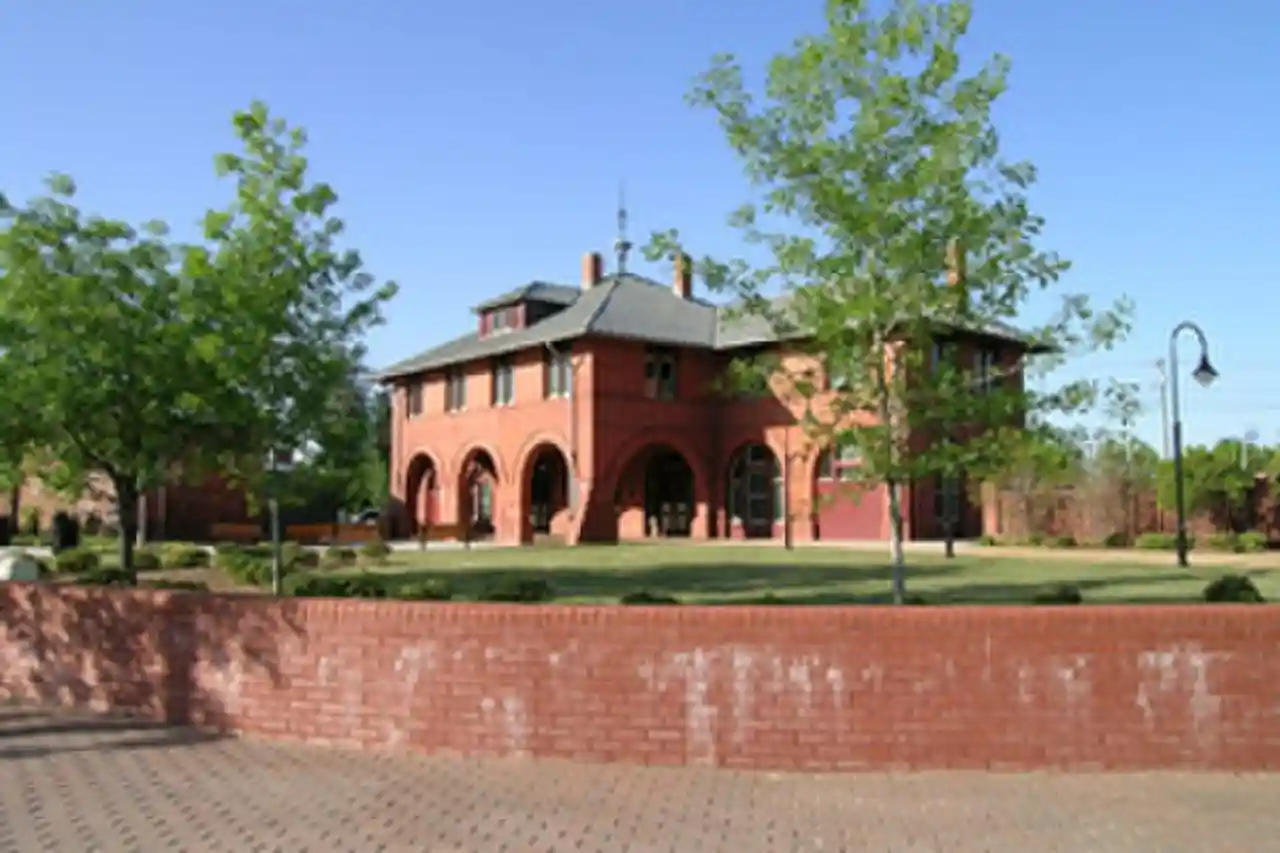 Cape Fear and Yadkin Valley Railway Passenger Depot is a historic train station located at 325 Franklin Street in Fayetteville, North Carolina (Cumberland County). It was built in 1890 by the Cape Fear and Yadkin Valley Railway. It is a two-story brick passenger depot with a deep hip roof in the Romanesque Revival style. The seven bay by two bay building features a rounded brick arch arcade. It was listed on the National Register of Historic Places in 1983. Read more on Wikipedia