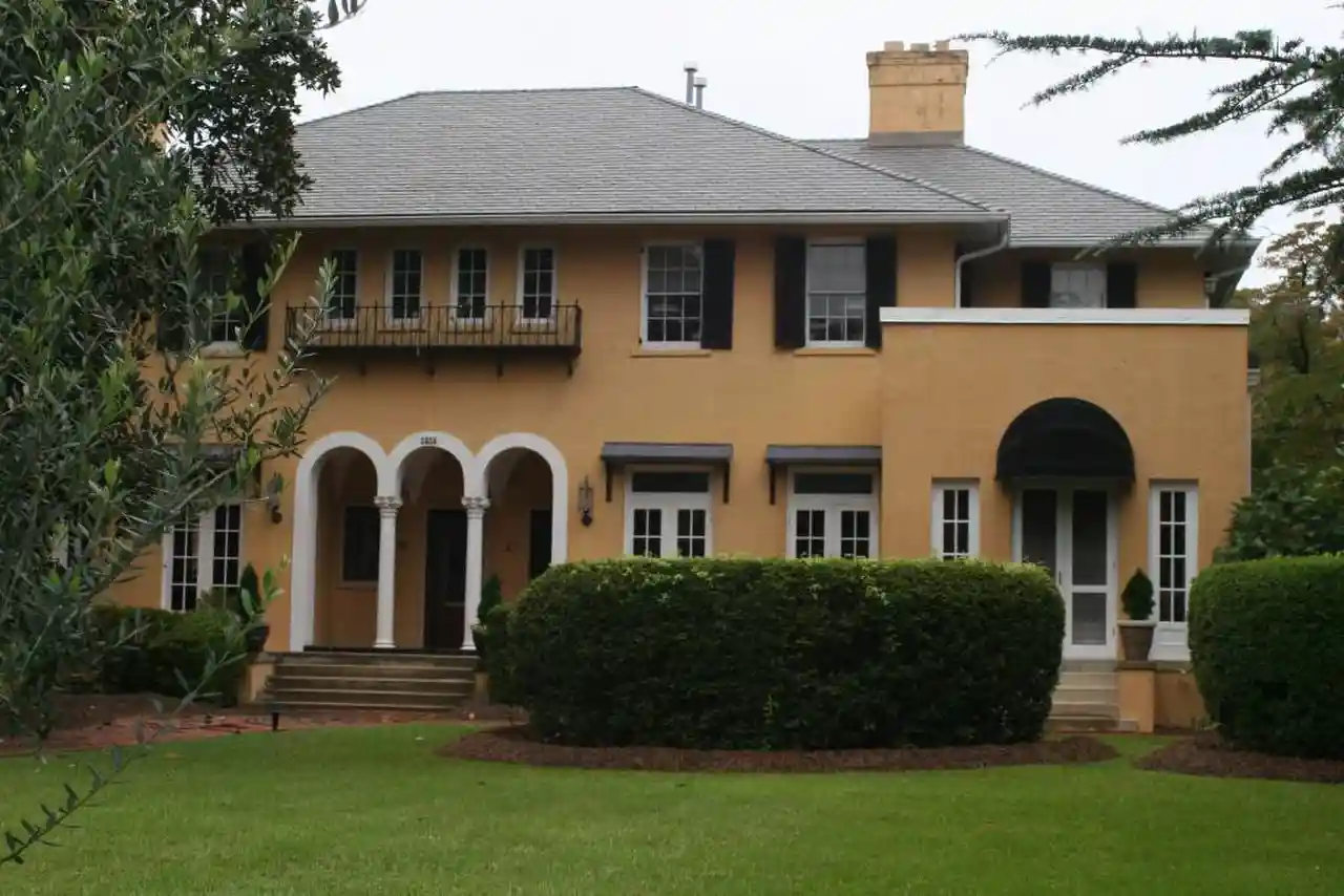 Frank H. Stedman House is a historic home located at Fayetteville, Cumberland County, North Carolina. It was built in 1925, and consists of a two-story, five-bay, main block with a hip roof and projecting one-story, flat-roofed wings that form a "U"-shape. It is sheathed in stucco and is in the Italian Renaissance style. The front facade features an arcade supported by two Corinthian order columns. Also on the property is a contributing garage apartment. Read more on Wikipedia