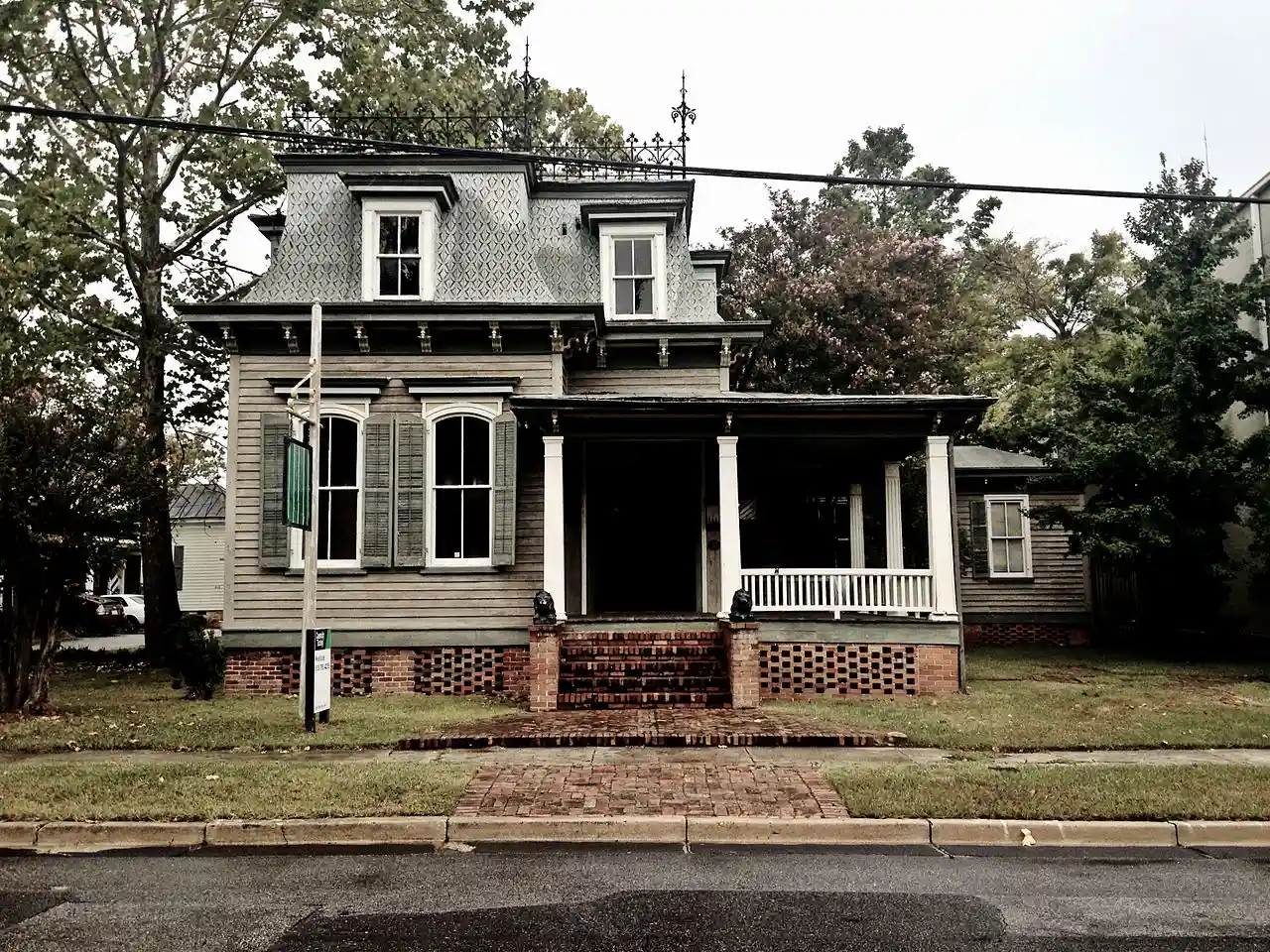 Mansard Roof House is a historic home located at Fayetteville, Cumberland County, North Carolina. It was built in 1883, and is a -story, three bay by six bay, Second Empire style frame dwelling. It has a side-hall plan and rear wing. It features a mansard roof covered with diaper-patterned pressed metal and wraparound porch. Read more on Wikipedia