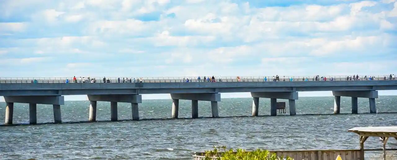 The Rodanthe Bridge, commonly called the Jug Handle Bridge, is a two-lane "jug handle" trestle bridge in Dare County, North Carolina. The bridge carries North Carolina Highway 12 from Rodanthe to the southern point of Pea Island National Wildlife Refuge by going west into the Pamlico Sound and then parallel an area of the Hatteras Island that is prone to coastal erosion, washouts, and flooding from storms. Read more on Wikipedia