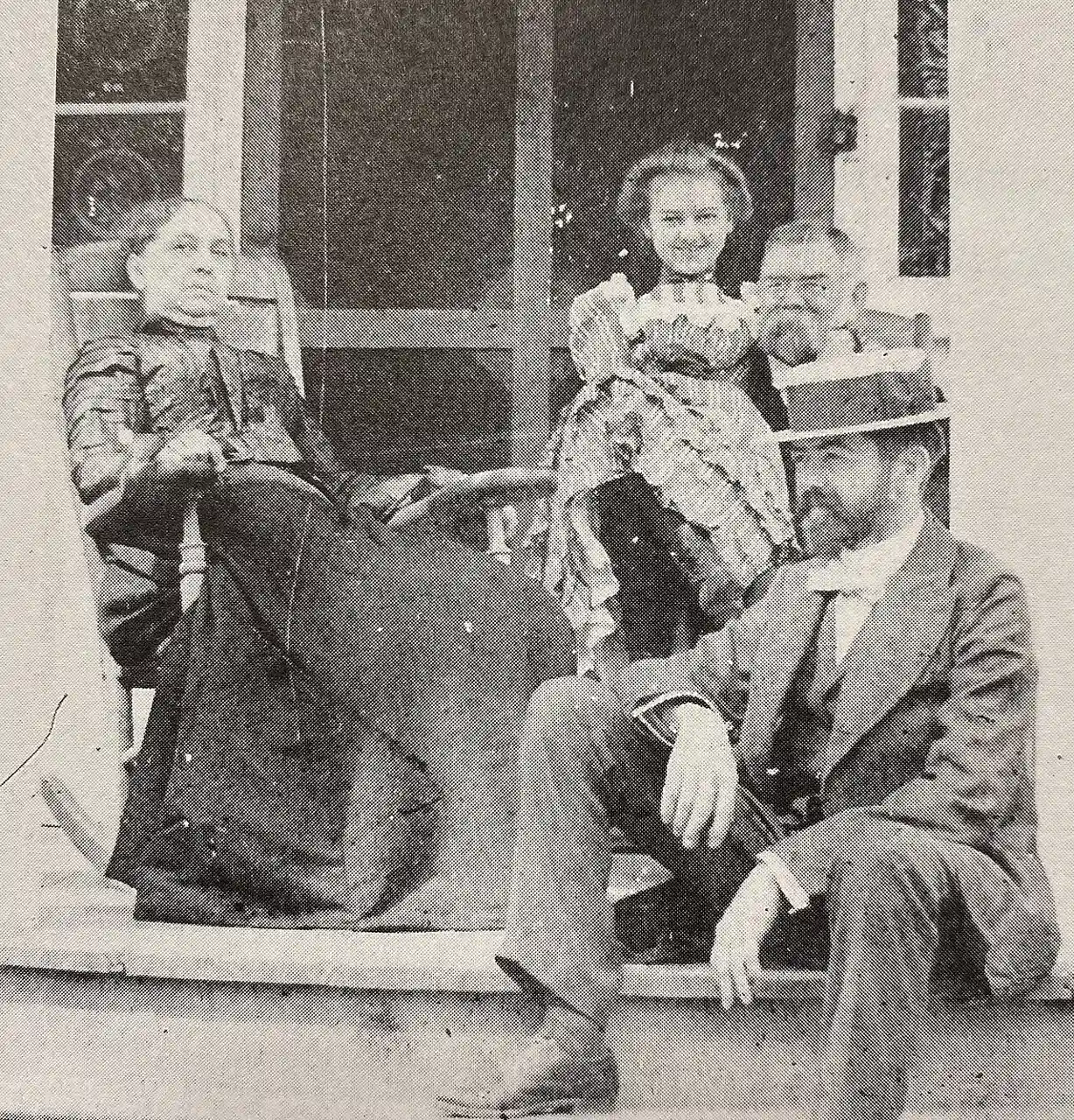 Bracebridge Hall is a part of historic farm, the house is part of a former former plantation and is a registered national historic district located near Macclesfield, Edgecombe County, North Carolina. The district encompasses eight contributing buildings, two contributing sites, and three contributing structures associated with the Bracebridge Hall . The original house was built about 1830–1832, and enlarged about 1835–1840, 1880–1881, and 1885. It is a two-story, five-bay, weatherboarded frame dwelling with Greek Revival and Victorian style design elements. It features a one-story Doric order portico. Also on the property are the contributing Metal boiler/basin (c. 1880–1900), Plantation Office (c. 1860–1885), Servants’ House (Aunt Pattie's House) (c. 1860–1885), Tobacco Barn (c. 1920), Troughs (c. 1890–1920), Large Barn (c. 1890–1915), Barn (c. 1920), Overseer's House (c. 1860–1885), Carr Cemetery (1820), and the Agricultural landscape. Buried in the cemetery is North Carolina Governor Elias Carr (1839-1900) and his wife Eleanor Kearny Carr (1840–1912). Read more on Wikipedia