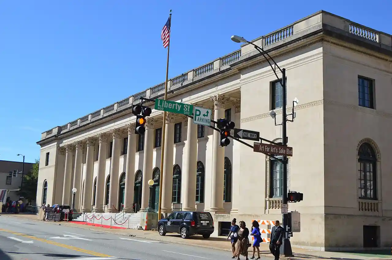 Downtown North Historic District, also known as Trade Street District, is a national historic district located at Winston-Salem, Forsyth County, North Carolina, USA. The district encompasses 46 contributing buildings in a commercial section of Winston-Salem. They were built between about 1907 and 1952, and most are one- or two-story brick buildings, sometimes with a stuccoed surface. Notable buildings include the Beaux-Arts style former United States Post Office (1914-1915, 1936-1937) with an addition by Northup and O'Brien, Brown-Rogers-Dixson Company Building (1928), Centenary Church Education Building (1920s), Pure Oil Station, City Market (1925), and Twin City Motor Company (1925). Read more on Wikipedia