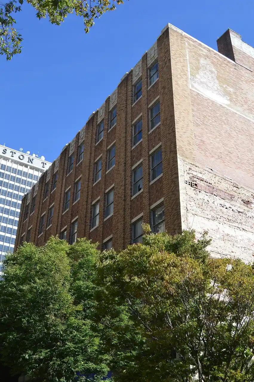The Pepper Building is a historic commercial building located at Winston-Salem, Forsyth County, North Carolina. It was designed by the architectural firm Northup and O'Brien and built in 1928. It is a six-story, brick building with Art Deco style detailing. It has a flat, parapeted roof and terra cotta decorative elements, including lions' heads and pilasters. The building originally housed a department store. Read more on Wikipedia