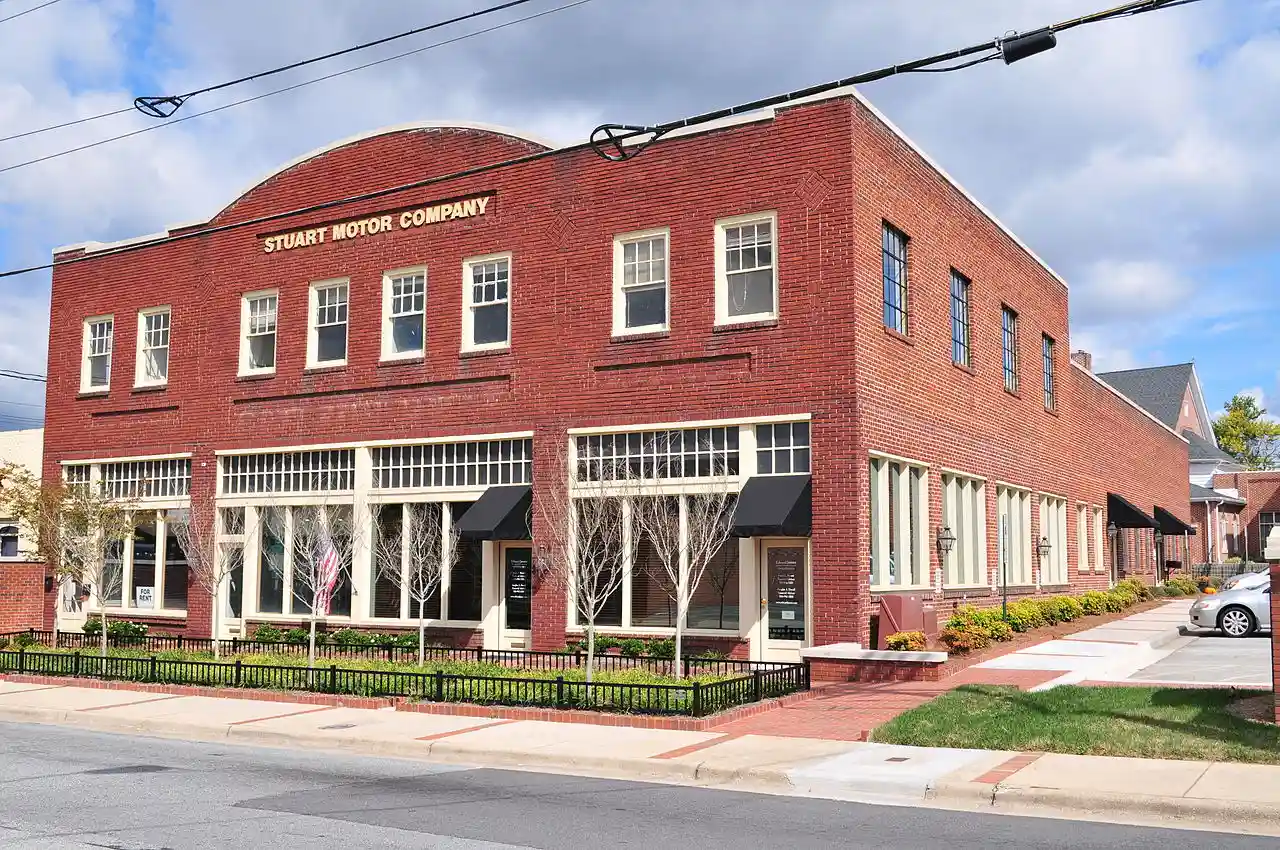 Stuart Motor Company is a historic automobile showroom building located at Kernersville, Forsyth County, North Carolina. It was built in 1926, and is a utilitarian brick building with a two-story front section and a tall one-story rear section. The building previously featured "STUART MOTOR COMPANY" in Art Deco lettering. Read more on Wikipedia