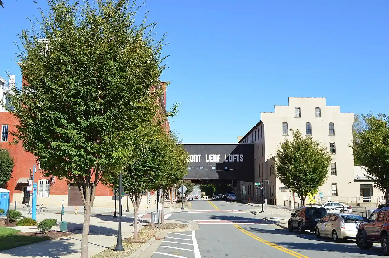 W. F. Smith and Sons Leaf House and Brown Brothers Company Building, also known as Piedmont Leaf Tobacco Co., is a historic tobacco manufacturing complex located at Winston-Salem, Forsyth County, North Carolina. The complex includes two buildings. The W. F. Smith and Sons Leaf House was built about 1890, and is a -story, nine bays long and three bays wide, stuccoed brick building with a stepped gable facade. The former Brown Brothers building, was built between 1890 and 1895, and is a five-story brick building with a mansard roof and hip roof dormer windows. By 1900 both buildings housed tobacco prizeries. Read more on Wikipedia