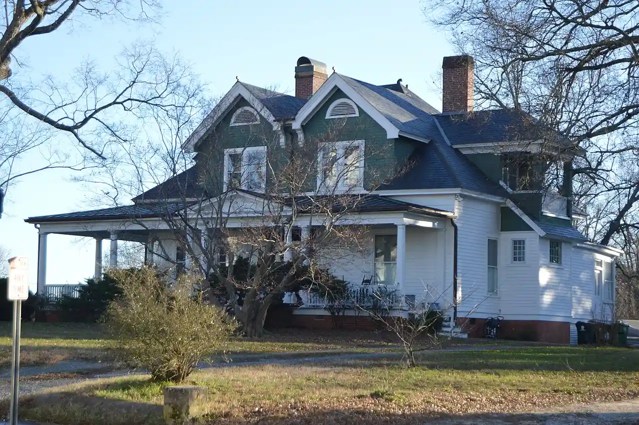 C.L. and Bessie G. McGhee House is a historic home located at 103 West Mason Street in Franklinton, Franklin County, North Carolina. It was built in 1911, and is a -story, three-bay, blended Colonial Revival / Bungalow style frame dwelling. The house has a steeply pitched hipped roof and stands on a full brick foundation. It features a one-story hip-roof wraparound porch and the interior has original wallpaper by M. H. Birge Company of Buffalo, New York. Also on the property is a contributing outbuilding (c. 1920). Read more on Wikipedia