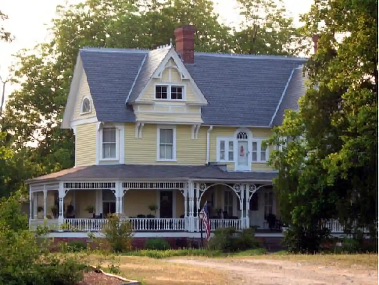Person–McGhee Farm is a historic farm complex located at 5631 U.S. Highway 1 in Franklinton, Franklin County, North Carolina, about 4 miles (6 kilometers) north of town. The earliest section of the house was built sometime between 1770 and 1820, and is a three-bay, two-story frame dwelling over a stone-walled cellar. It has double shouldered brick end chimneys. In the 1890s, a large 2 1/2-story Queen Anne / Colonial Revival style section was added to the original Federal period dwelling. Also on the property are the contributing tenant house (1860s-1870s), a water tower, smokehouse, cattle barn, three log tobacco barns, and several sheds. Read more on Wikipedia