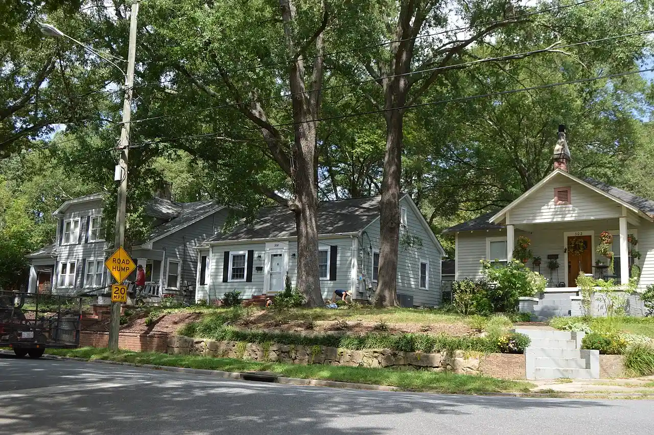 York-Chester Historic District is a national historic district located at Gastonia, Gaston County, North Carolina, United States. It encompasses 649 contributing buildings, 2 contributing sites, and 1 contributing structure in a predominantly residential section of Gastonia. The dwellings were built between about 1856 and 1955, and include notable examples of Queen Anne and Bungalow / American Craftsman architecture. Located in the district are the separately listed former Gastonia High School. Other notable contributing resources include the Beal-Ragan Garden, Oakwood Cemetery, Caroline Hanna House (c. 1882), Spurrier Apartment building (c. 1929), Edgewood Apartments (c. 1937), and Devant J. and June S. Purvis House (1951). Read more on Wikipedia