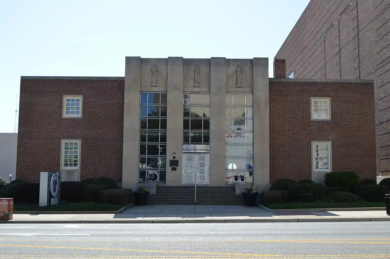 Guilford County Office and Court Building is a historic office and municipal and North Carolina Superior Court courthouse building located at Greensboro, Guilford County, North Carolina. It was built in 1937, and is a two-story, three part, Art Moderne style brick building. It has a stylized entrance with three unornamented pilasters without capitals, which extend above the roofline. Read more on Wikipedia