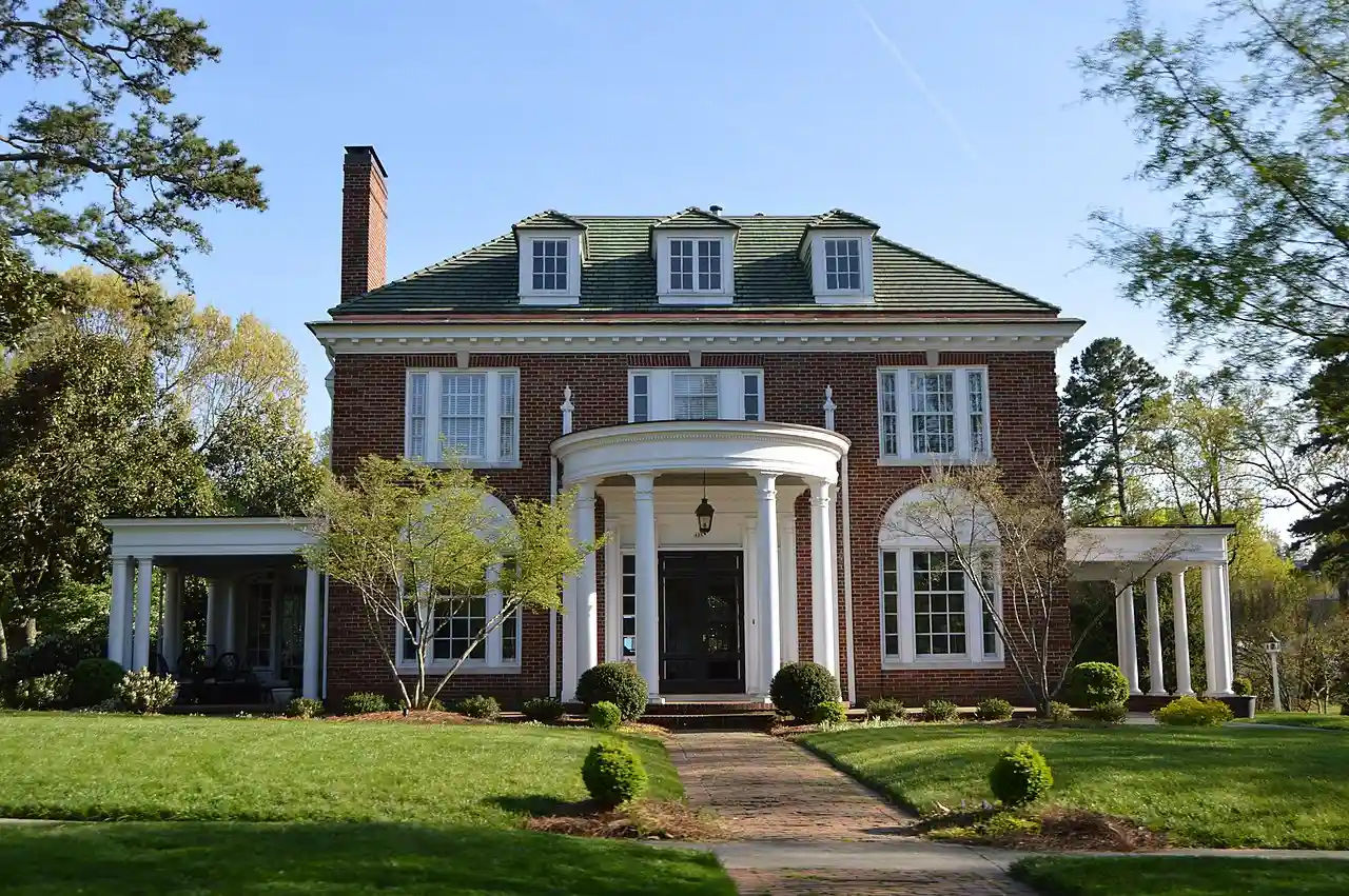 Lucy and J. Vassie Wilson House is a historic home located at High Point, Guilford County, North Carolina. It was built in 1926, and is a two-story, three-bay, Colonial Revival style brick dwelling. It has a tile hipped roof, porte-cochère, and features a semicircular columned porch supported by four columns with stylized Corinthian order capitals. Also on the property is a contributing three-car brick garage. Read more on Wikipedia
