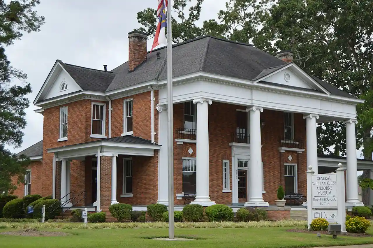 Gen. William C. Lee House is a historic home located at Dunn, Harnett County, North Carolina. It was built about 1915, and is a two-story, three-bay, double pile, Classical Revival style brick veneer mansion with a hipped roof. It has one-story rear wings and features a full facade porch with monumental Tuscan order columns. It was the home of World War II General William C. Lee, whose wife acquired it in 1935. The house contains offices for the Dunn Area Chamber of Commerce and a museum memorial to the General. Read more on Wikipedia