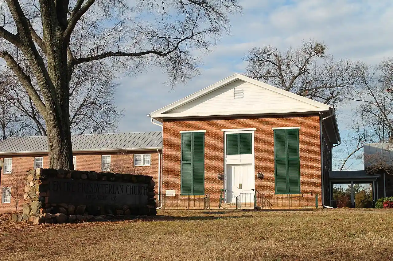 Centre Presbyterian Church, Session House and Cemeteries is a historic Presbyterian church, session house, and cemetery located near Mount Mourne, Iredell County, North Carolina (Mooresville, North Carolina). The original church building was constructed in 1765, but was destroyed by fire. The current church building and session house were constructed 1854. The church is a one-story, three bay by four bay, rectangular vernacular Greek Revival style brick church. The church's cemetery contains gravestones dating to the 18th century.Centre Presbyterian Church history Read more on Wikipedia