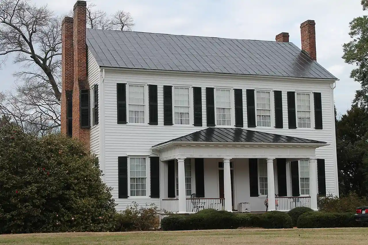 Mount Mourne Plantation is a former Southern plantation and historic house located in Mount Mourne, Iredell County, North Carolina. It was built in 1836, and is a two-story, five-bay transitional Federal / Greek Revival style frame dwelling. It features a hipped roof entrance portico with four fluted Tuscan order columns. Read more on Wikipedia