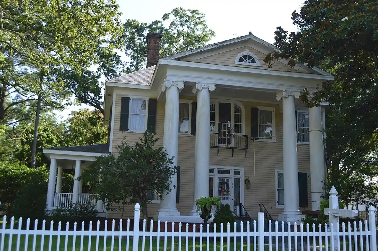 William E. Smith House, also known as The French Country Inn, is a historic home located at Selma, Johnston County, North Carolina. It was built about 1900 and enlarged to its present size about 1912, and is a two-story, Classical Revival style frame dwelling. The front facade features an imposing pedimented portico supported by giant Ionic order columns. Read more on Wikipedia
