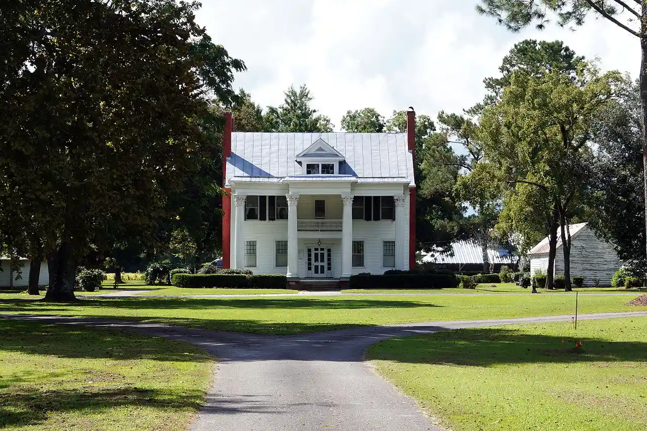 Bryan–Bell Farm, also known as Oakview Plantation, is a historic plantation house and farm complex and national historic district located near Pollocksville, Jones County, North Carolina. The district encompasses 25 contributing buildings, 2 contributing sites, and 2 contributing structures spread over seven areas. The main house was built about 1844 in the Federal style, and renovated in 1920 in the Classical Revival style. It is a -story, five-bay, frame residence with a monumental portico with Corinthian order columns. Among the other contributing resources are the farm landscape, office (1920s), seven pack houses (1920s), equipment building (c. 1939), storage building (c. 1930), barn (c. 1840), two chicken houses (c. 1923), stable / carriage house (c. 1920), two garages (c. 1930s), equipment shed (c. 1930), metal silo (c. 1930), hay barn (c. 1932), two tobacco barns (c. 1920), I-house (c. 1880), a log barn (c. 1890), a small plank building, farm house (c. 1900), and 19th century graveyard. Read more on Wikipedia