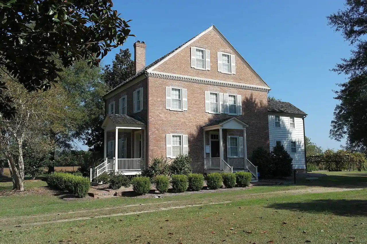 Foscue Plantation House is a historic plantation house located near Pollocksville, Jones County, North Carolina. It was built about 1801, and is a two-story, three-bay, side hall plan brick dwelling. It rests on a full raised brick basement and has a gable roof. Read more on Wikipedia