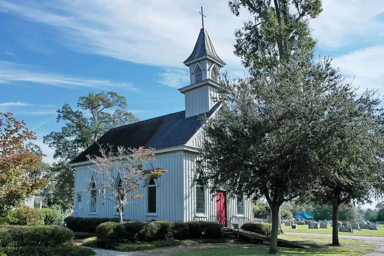 Grace Episcopal Church is a historic Episcopal church located at Lake View Drive and Weber Street in Trenton, Jones County, North Carolina. It was built in 1885, and is a small, rectangular board-and-batten frame Carpenter Gothic style building. It rests on a low brick foundation and has a gable roof topped by a steeple. The church was consecrated on June 12, 1892. Read more on Wikipedia