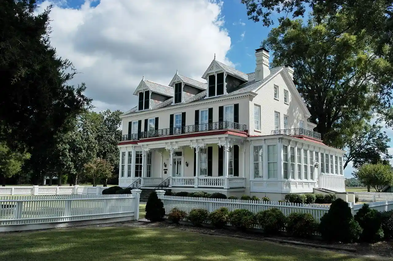 Cedar Dell, also known as Kennedy Memorial Home, is a historic plantation house located near Falling Creek, Lenoir County, North Carolina. It was originally constructed about 1820 as a two-story, three-bay, Federal style brick dwelling with a side-hall plan. It was enlarged to five bays wide and converted to a Victorian Gothic central hall plan mansion. The front facade features a one-story Eastlake-style porch with a low roof topped by a wrought iron balustrade and the rear facade has a two-tier porch. Also on the front facade is a large bay window with a roof identical to that on the porch. The house and property were deeded for use as an orphanage in 1912. Read more on Wikipedia