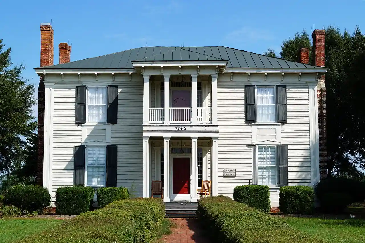The Dempsey Wood House is a historic home located near Kinston, North Carolina, United States. Built in the mid-19th century, the house exemplifies the transition from Greek Revival to Victorian architecture. Interesting architectural details of the home include the two-story porch and eight fireplaces. The Dempsey Wood House was added to the National Register of Historic Places (NRHP) in 1971. Read more on Wikipedia