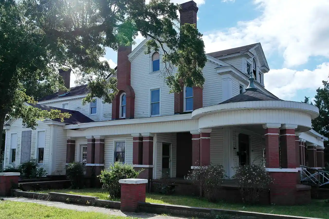 Robert L. Blalock House is a historic home located at Kinston, Lenoir County, North Carolina. It consists of the original two-story, three-bay, double-pile, side-hall-plan Greek Revival style main block dated to the 1850s, and a large, two-story rear ell. It has a one-story gable-roofed wing and a small shed-roofed room north of the rear ell and a complex arrangement of one- and two-story additions and enclosed porches to the south. The house was renovated in the 1920s in the Classical Revival style. It features a full-width front porch supported by groups of square-section brick columns with a round corner pavilion and porte-cochère. It has housed a funeral home since 1947. Read more on Wikipedia