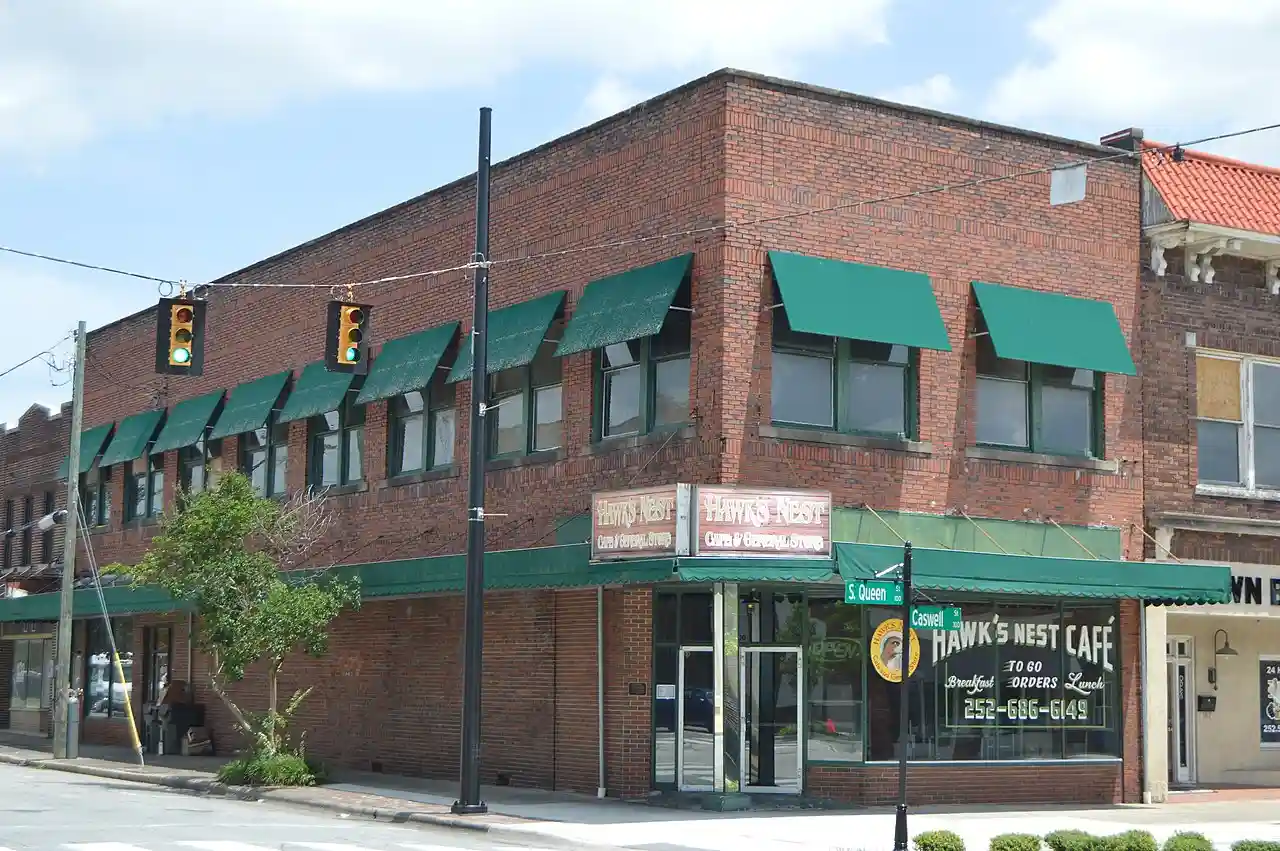 The Standard Drug No. 2 is a historic commercial building located in Kinston, Lenoir County, North Carolina. It was built between 1918 and 1924, and is a two-story, brick Commercial Style with street level, plate-glass windows. The interior retains an Art Deco-style lunch counter and pressed metal ceiling. Sit-ins were held at the lunch counter in 1960 and 1961, to protest segregation. Read more on Wikipedia