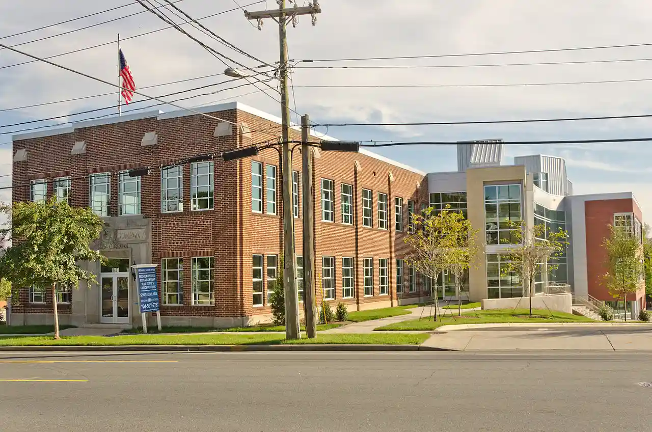 Grinnell Company-General Fire Extinguisher Company Complex is a historic factory complex located at Charlotte, Mecklenburg County, North Carolina. It was built in 1929–1930, and consists of a two-story office building and massive tall, one-story Grinnell manufacturing building. The office building is a reinforced concrete structure, with a brick veneer, a flat roof, and a parapet capped in concrete coping. The manufacturing building has a poured concrete slab foundation, brick veneered walls, a steel framing system consisting of I-beam piers and heavy Pratt truss roof, banks of continuous, steel sash windows, and large, sawtooth monitors. The complex was built for the largest manufacturer of automatic sprinklers and other fire protection products in North America. Read more on Wikipedia