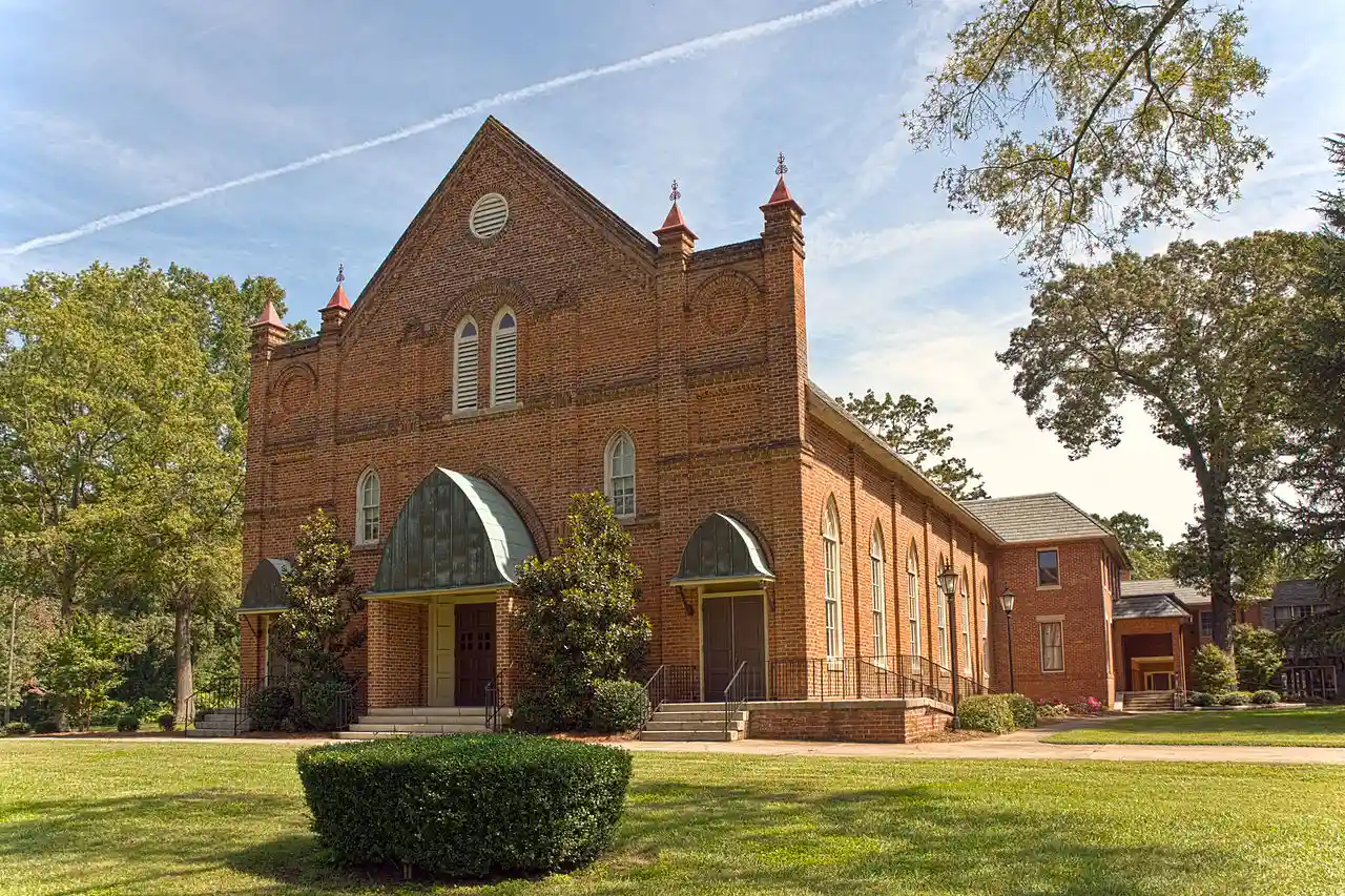 Steele Creek Presbyterian Church and Cemetery is a historic Presbyterian church complex and national historic district located near Charlotte, Mecklenburg County, North Carolina. The church was founded in 1760 and the current sanctuary was built in 1889, and is a rectangular, Gothic Revival style brick building. It is five bays wide and six bays deep, and has pointed-arched sash windows, shallow buttresses, and steeply pitched roof parapet. The cemetery contains approximately 1,700 headstones, with the oldest dating to 1763. Read more on Wikipedia