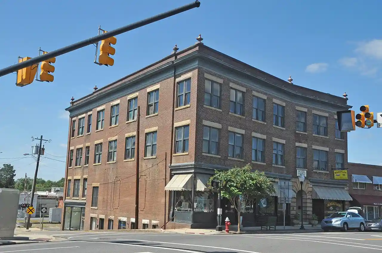 Hotel Troy is a historic commercial building located in Troy, Montgomery County, North Carolina. It was built in 1908–1909, and is a three-story, seven bay by eight bay, brick building, rising above a full basement with Classical Revival style design elements. The front facade features cast iron pilasters, columns with foliated capitals and cornices. Originally built for multi-purpose use including a sanitorium, in 1925, rooms in the upper stories were modified for use as hotel rooms and baths. The hotel became a rooming house in the 1950s and finally closed in 1970. Read more on Wikipedia