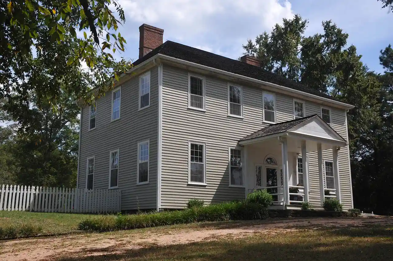 Alexander Kelly House, also known as the John B. Kelly House, is a historic plantation house located near Carthage, Moore County, North Carolina. It was built in 1842, and is a two-story, five-bay, double pile, Federal / Greek Revival style frame dwelling. The house rests on tapered, hewn brownstone piers and has a deep hip roof. The front facade features a three-bay pedimented porch. Read more on Wikipedia