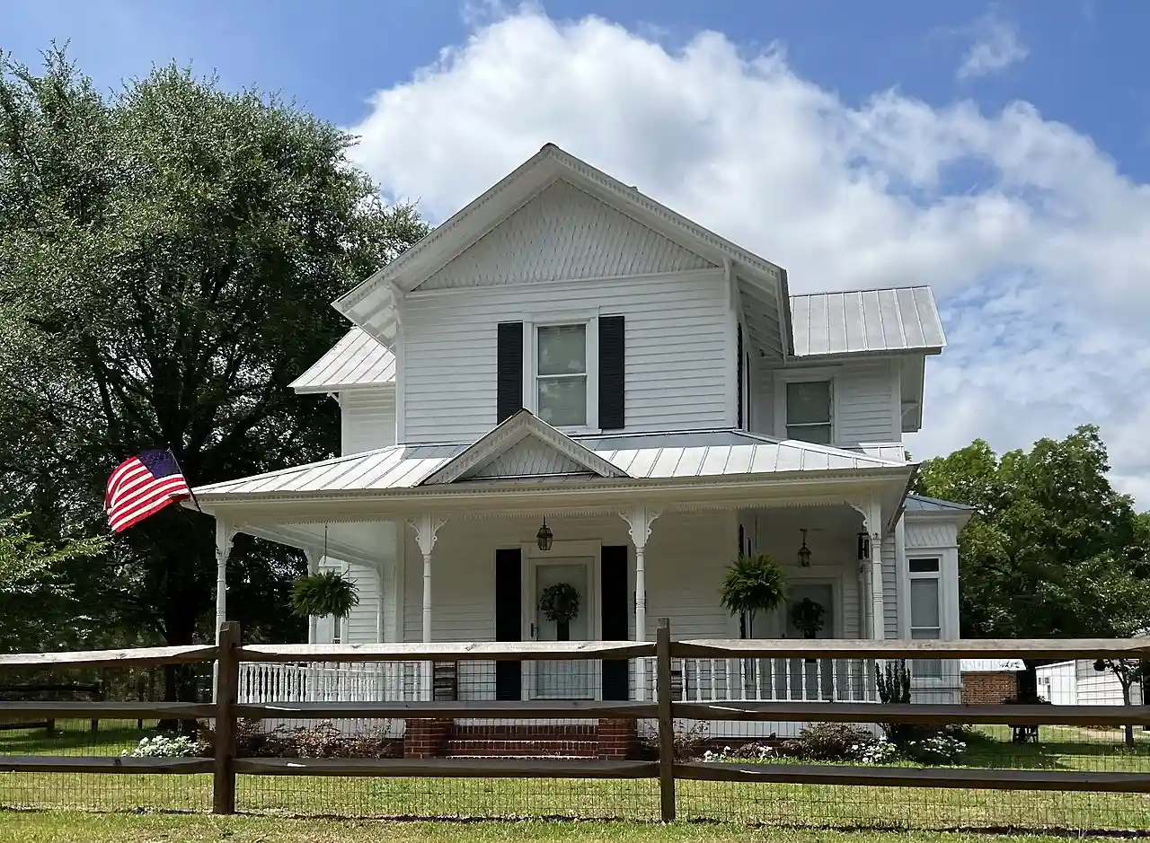 John Evander Phillips House is a historic home located near Cameron, Moore County, North Carolina. It was built in 1893, and is a two-story, cruciform plan, frame farmhouse with Late Victorian style decorative elements. The front facade features wraparound porch. A breezeway at the rear of the dwelling, enclosed before 1937, joins the main block to a late 18th-century kitchen house. Also on the property is a contributing brick cider house (c. 1893). Read more on Wikipedia