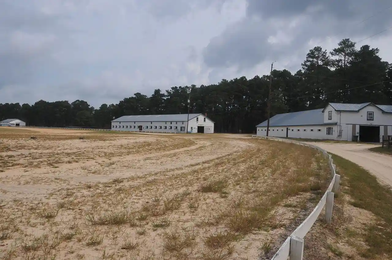 Pinehurst Race Track is a historic horse racing track and national historic district located at Pinehurst in Moore County, North Carolina, USA. The district encompasses 10 contributing buildings, 8 contributing sites, and 1 contributing structure on a complex of barns, stables and other horse-related buildings and paddocks arranged around two oval-shaped race tracks. The oval-shaped race tracks are believed to have been laid out by 1915 as part of the Pinehurst Race Track established by Leonard Tufts. The Amphidrome is a large agricultural exhibition hall built about 1917. It is a 2 1/2-story, gable-roofed building with stuccoed exterior walls and massive timber roof trusses in the Mission Revival style. Other contributing resources include six paddocks (c. 1916-1920), six barns (c. 1910), harness shop (1930), farrier shop (c. 1910), clubhouse (c. 1916), the network of lanes and driveways (c. 1910), and fences (c. 1910). Pinehurst Race Track is the site of the oldest surviving early-20th century fair exhibition hall in the state. Read more on Wikipedia
