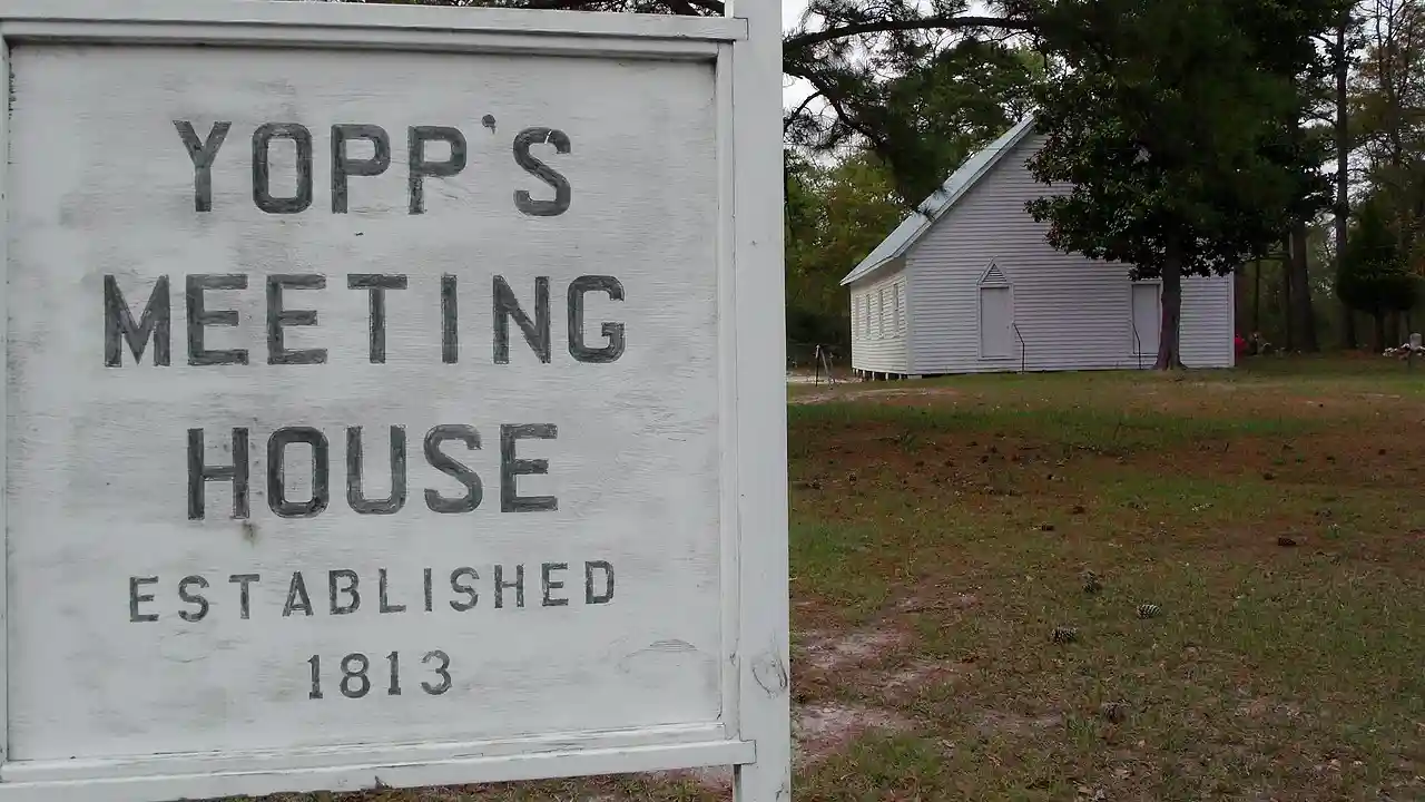 Yopps Meeting House, also known as Yopps Primitive Baptist Church, is a historic Primitive Baptist church located at Sneads Ferry, Onslow County, North Carolina. The current building was built around 1890, however the Friends of Yopp's Meeting House organization claims there may have been a log precursor built as early as 1813. The meeting house is a one-story, rectangular, frame building with a steep, gable-front roof and Greek Revival style design elements. Also on the property are two contributing cemeteries, one for white and one for African-American parishioners. Some of the plots are surrounded by iron fencing. Read more on Wikipedia