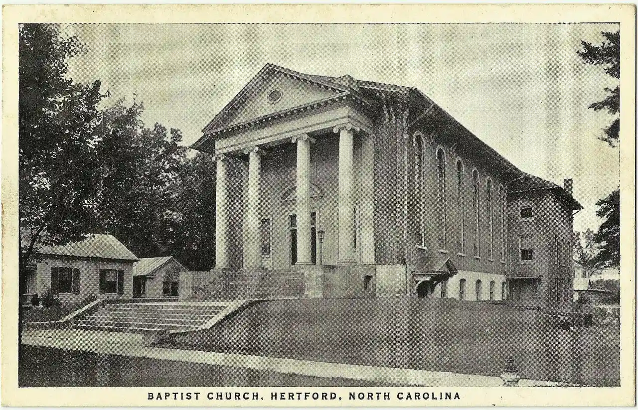 Hertford Historic District is a national historic district located at Hertford, Perquimans County, North Carolina. The district encompasses 219 contributing buildings, 2 contributing sites, 1 contributing structure, and 1 contributing object in the central business district and surrounding residential sections of Hertford. The district developed between about 1759 and 1948, and includes notable examples of Federal, Greek Revival, and Gothic Revival style architecture. Located in the district are the separately listed Perquimans County Courthouse and Church of the Holy Trinity. Other notable buildings include the Creecy-Skinner-Whedbee House (c. 1779), Edward Wood House (c. 1818), Matthews-Jacocks House (c. 1824), Temperance Hall (1851), Matthew H. White House (c. 1893), Dr. Thomas S. McMullan House (1905), Thomas Nixon House (c. 1917), William M. Divers House (1924), W.R. Shannonhouse Building (1895), Darden Department Store (c. 1909), Farmers National Bank of Hertford (1916), State Theatre (1937), Old Hertford Post Office (1915), Hertford Baptist Church (1854), and Hertford United Methodist Church (1901). Read more on Wikipedia