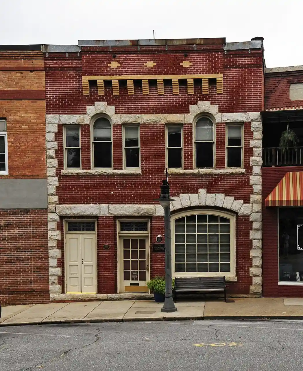 Bank of Tryon Building, also known as the Tryon Daily Bulletin Building and Hester Building, is a historic bank building located at Tryon, Polk County, North Carolina. It was built in 1907–1908, and is a two-story, two-bay, Romanesque Revival style brick-and-stone building. It features granite quoins, second-story Palladian-type windows, and a projecting parapet. Since 1935, the building has been home to the Tryon Daily Bulletin, the world's smallest daily newspaper. Read more on Wikipedia
