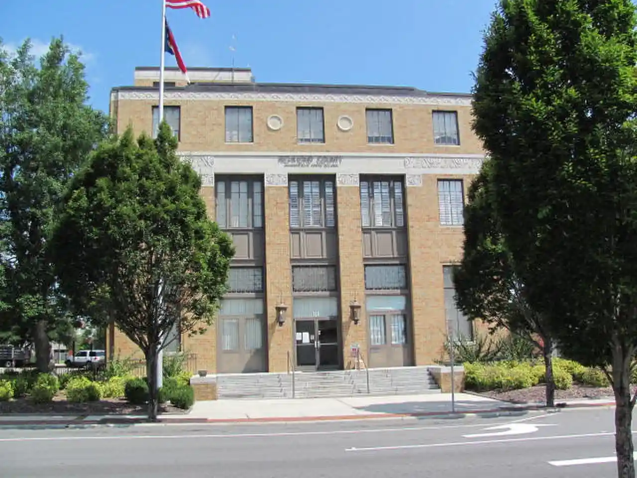 U. S. Post Office and Federal Building is a historic post office building located at Rockingham, Richmond County, North Carolina. It was designed by the Office of the Supervising Architect under Louis A. Simon and built in 1935–1936. It is a two-story, five-bay, yellow brick veneer building in the Art Deco style. It features a 1937 Works Progress Administration mural titled "Human Aspects of the Postal Service" ·by artist Edward Lanning in the front lobby. The building was occupied by the Rockingham Post Office until 1977 when it was purchased by Richmond County from the United States Postal Service. Read more on Wikipedia