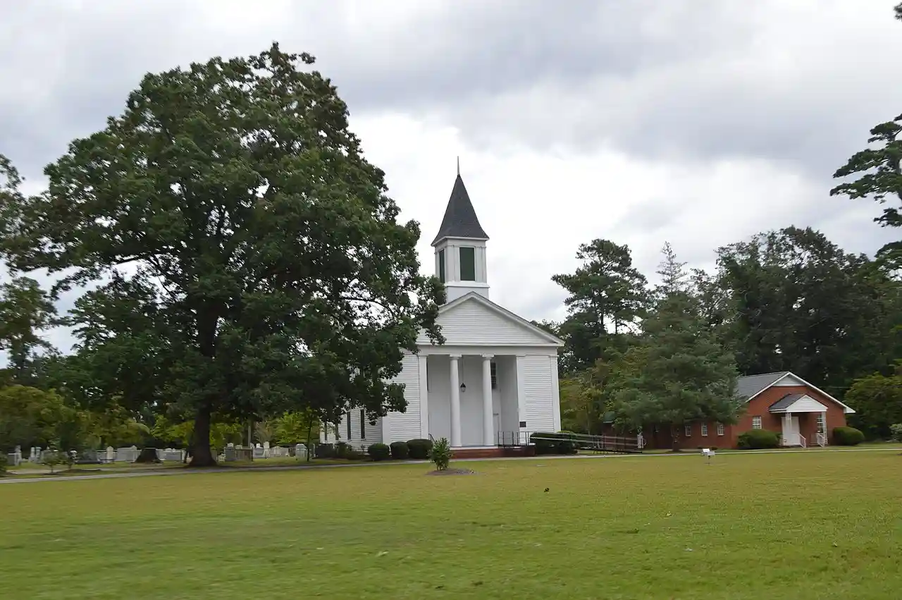 Philadelphus Presbyterian Church, is a historic Presbyterian church located near Philadelphus, Robeson County, North Carolina. It was built during the Antebellum era, in 1858, by carpenter Gilbert P. Higley. This church replaced an earlier one which had been in existence since at least 1795. The new church by Higley was constructed in the Greek Revival style with an in antis portico (columns on either side of the entranceway) and was able to accommodate a two-story sanctuary and gallery. Read more on Wikipedia