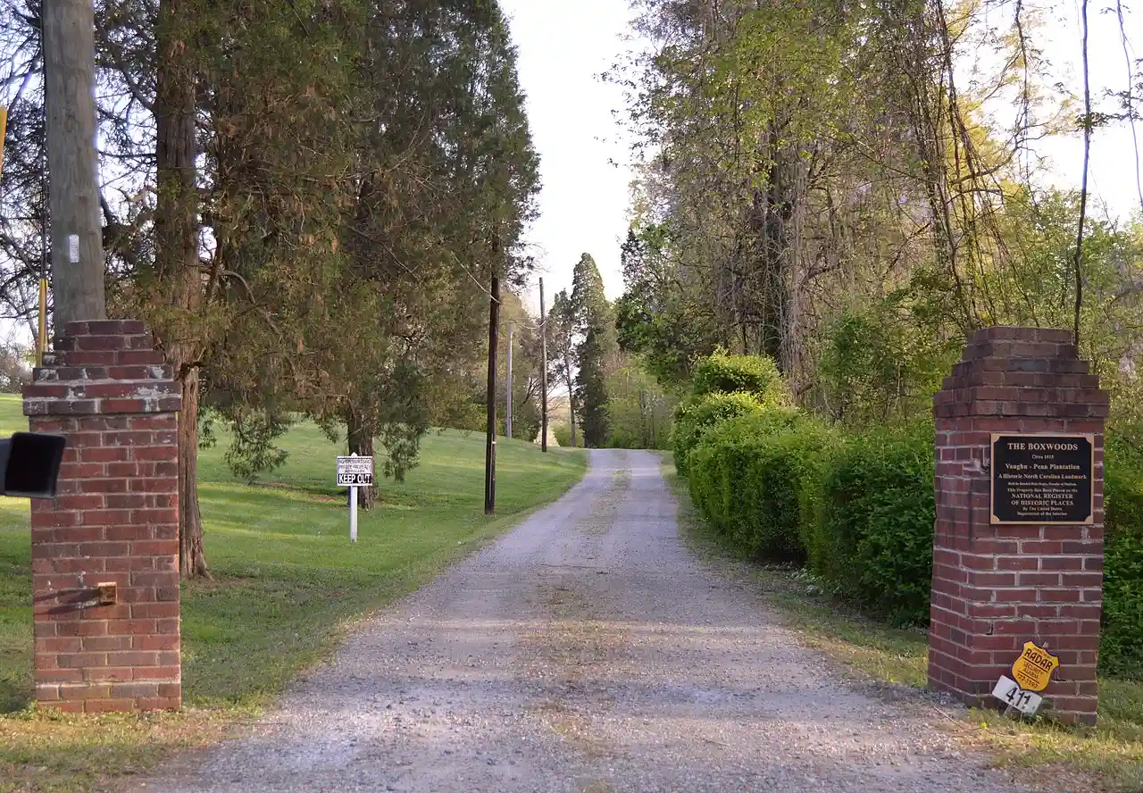 The Boxwoods (also known as Rural Retreat) is a historic plantation house located near Madison, Rockingham County, North Carolina. It was built about 1815, and is a two-story, five-bay, Federal style brick dwelling. It has a small one-story, gabled frame addition. It has pairs of brick exterior chimneys on each gable end and features a full-length one-story mid-19th century porch. Read more on Wikipedia