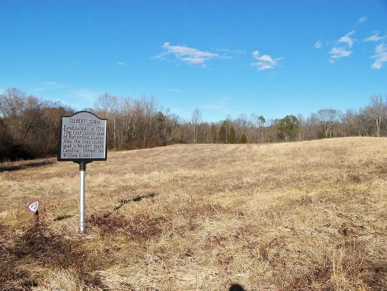 Gilbert Town Historic District is an archaeological site listed in the National Register of Historic Places located in Rutherfordton, Rutherford County, North Carolina. From 1776 to 1783, Gilbert Town was an important trading center and served as a camp for both Patriot and Loyalist forces during the American Revolutionary War. Gilbert Town included the William Gilbert House, a store, tavern, mill, and blacksmith shop. Gilbert Town was also the site of the Rutherford County Courthouse from 1781 to 1783. The sites are located along the approximate location of Rock Road on the Overmountain Victory National Historic Trail. Read more on Wikipedia