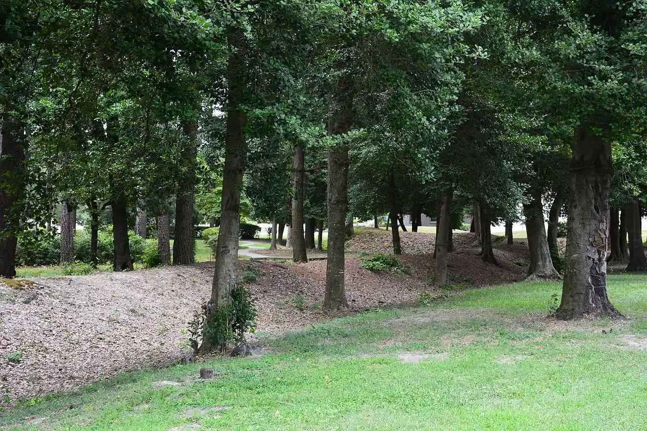 Confederate Breastworks is a historic breastworks located at Fayetteville, Cumberland County, North Carolina. The earthen bunkers are located on the grounds of the Fayetteville Veterans Administration Hospital behind the main building. They were built in March 1865 as part of the fortification of Fayetteville by the Confederate army to protect the city against the oncoming forces led by General William Tecumseh Sherman. Read more on Wikipedia