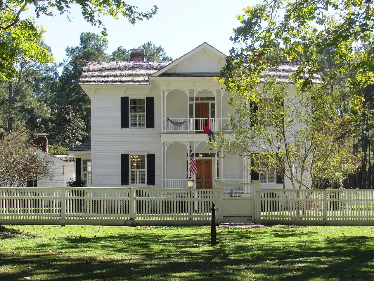 McRae-McQueen House is a historic home located near Johns, Scotland County, North Carolina. The original section was built about 1810, and is a rectangular one-story frame structure. It was enlarged with a two-story, Federal style block in the 1870s. The later block has bracketed eaves and a two-tier portico. Read more on Wikipedia