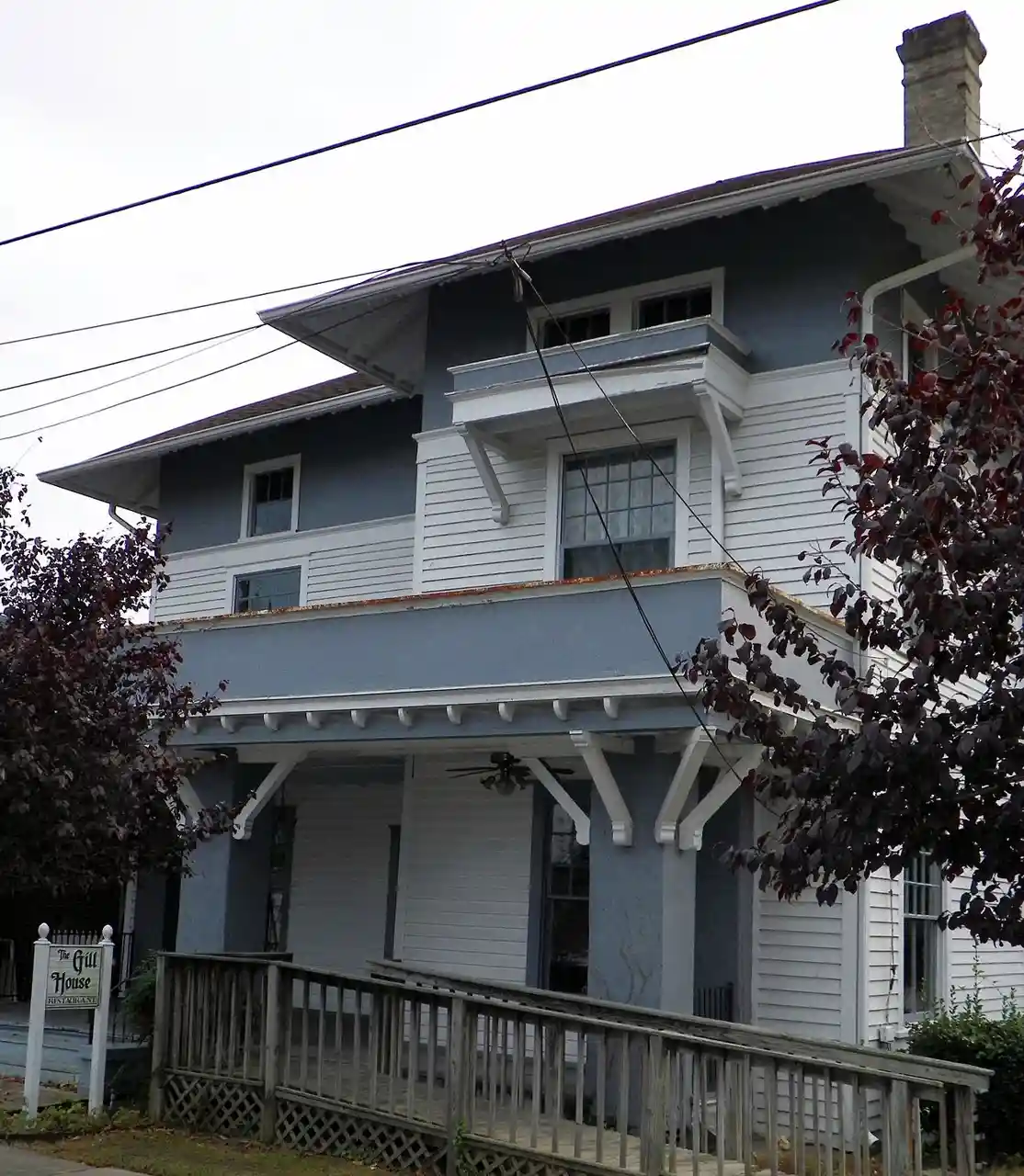 Thomas J. Gill House is a historic home located at Laurinburg, Scotland County, North Carolina. It was built in 1904, and is a -story, three bay by three bay, frame dwelling, with Stick Style and Bungalow design elements. The interior is in the Colonial Revival style. It has a hipped roof, exterior stucco and brackets, and full-width front porch. Also on the property is a contributing gazebo. It was the home of North Carolina State Treasurer Edwin M. Gill (1899-1978). Read more on Wikipedia